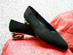 These Ann Marino black suede slide is so comfortable. the heel is 2 1/2" suede heel. They are really classy! Size 8 1/2 Medium. $10.95, shipping $4.80. Classique Black Suede Shoes with Leopard Heal Accent