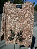 This sweater designed by Celina Wang is so beautiful! It is hard to describe. It has beautiful ribbon embroidered flowers and ribbon accents. Very lovely. $19.95, shipping $4.80. Anthony Mark Hankins Sweater 1XThe sweater is designed by Anthony Mark Hankins. It's 55%, 45% cotton. Hand wash. It measures 30" from shoulder to hem. 28" inches from underarm to underarm. Size 3X. $19.95, shipping $4.80. Lauren Brook Aqua Sweater