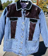 This pretty sweater was designed by Lauren Brooke. It is 100% acrylic. It is a pretty shade of aqua and has silver threads running through the design. Very soft and pretty. $9.95, shipping $4.80. Cervelle Denim Coat