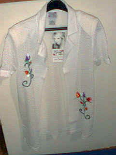 Lacy Afternoon Open Jacket by Shell Kepler. An open weave decorated open jacket. Light weight, has shoulder pads. No buttons. Size is Small 70% polyester, 30% cotton. hand washable. Only $14.95 + $3.55 s&h. (out of stock) Check ebay for this item. Lacy Afternoon s/s Blouse